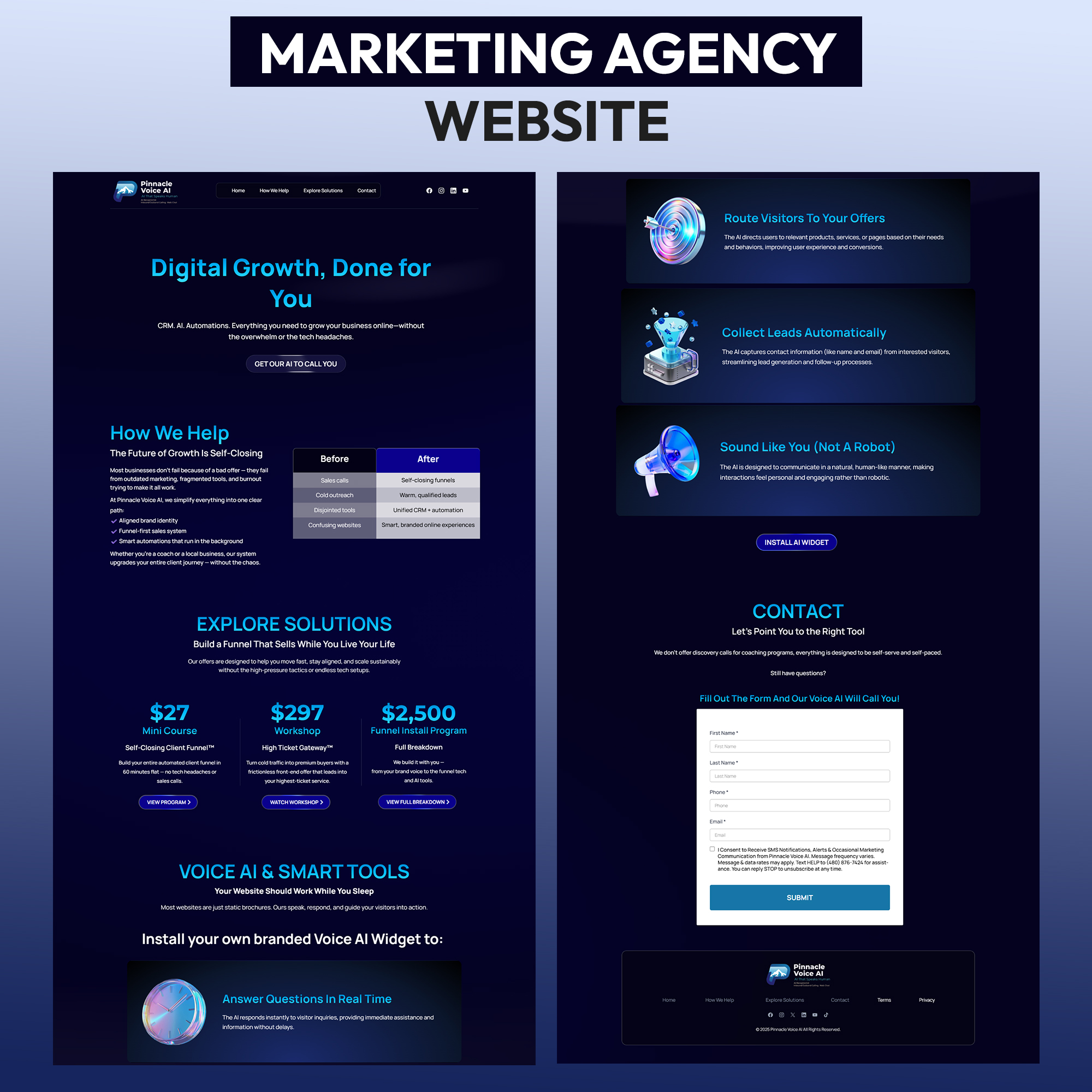 Most websites are static brochures — beautiful but passive. Pinnacle Voice AI wanted something different. Something alive.